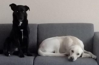 Op de foto ziet u Qimmiq en Moddey, samen op de bank.